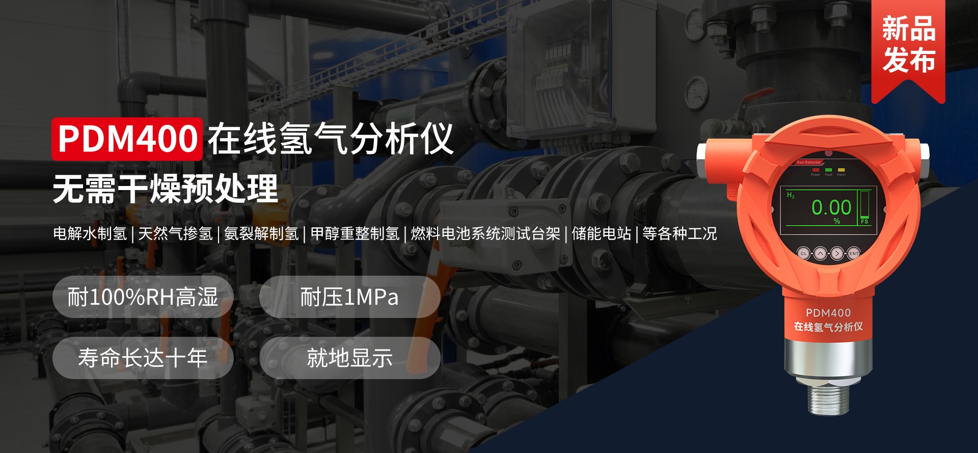 電解水、天然氣、氫分裂制氫,輸氫管道、氫氣置換,制氫站、加氫機、卸氣柱、撬裝站、氫燃料電池汽車及系統(tǒng)測試臺架、熱電聯(lián)供、氫滲氫實驗室、涉氫生產廠房、氫氣氣瓶間等場合中的氫氣濃度、純度、濕度檢測。